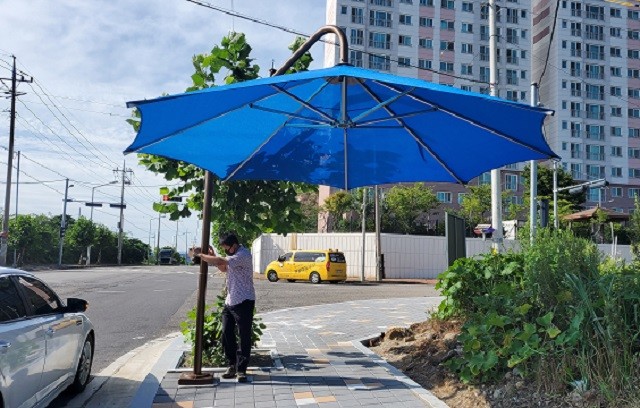 여름철 폭염에 대비해 삼호읍 용당리 현대삼호아파트 사거리 및 대불초등학교 앞 등 학생들을 비롯해 유동인구가 많은 7곳에 그늘막을 추가 설치했다.
