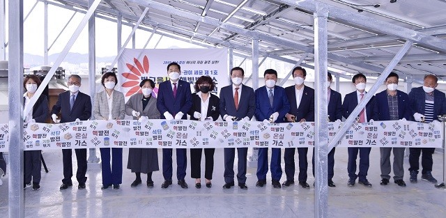 광주광역시는 22일 서구 농성빛여울채 아파트에서 시의회 김용집 의장, 김광란‧장연주 의원, 정은진 빛고을시민햇빛발전사회적협동조합 이사장, 김선민 광주테크노파크 원장, 노경수 광주도시공사 사장 등이 참석한 가운데 ‘빛고을시민햇빛 발전소’ 준공식을 개최했다.