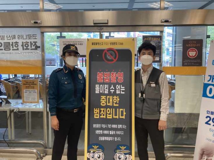 치하고 홍보물에는 디지털 성범죄에 대해 경각심을 심어주고 적극 신고하여 줄 것을 요청하는 내용의 문구가 담겨있다.