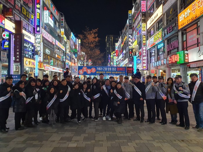 경기 안양시가 최근 평촌역 일대에서 불법촬영카메라 근절을 위한 민관합동 캠페인을 전개했다. 이날 시 공무원을 비롯해 경찰, 상가번영회, 주민 등 50여명은 시민들에게 홍보물을 나눠주며 캠페인 참여를 당부했다. 사진은 캠페인 참여자들의 기념촬영 모습. (사진제공=안양시청)