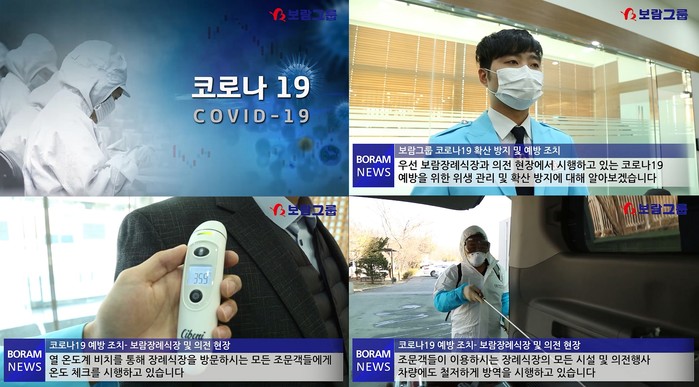 보람상조는 직영 장례식장 5곳을 포함해 모든 의전 현장에서 직원들의 마스크와 장갑 착용을 의무화했다. 식장 내 열온도계 비치하고 열화상 카메라를 설치해 모든 조문객의 체온을 체크한다.