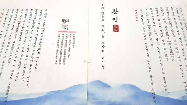 고려시대 일연(一然)이 쓴 『삼국유사』에 ‘昔有桓因 謂帝釋也’ 옛날 환인이 계셨으니 하느님이시다 하였고, 조선시대 일십당 이맥(李陌)은 『태백일사』 ‘桓國天帝所居之邦’ 환국은 하느님께서 계시는 나라이다, ‘朝代記曰昔有桓因降居天山’ 옛적에 환인이 계셨나니 하늘에서 천산으로 내려오셨다 하여, 환인(桓因)은 하늘에 계시는 하느님이요, 환국(桓國)은 하느님 환인의 나라임을 기록하여 전하였다.