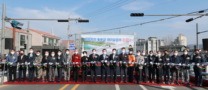 경남 함양군은 16일 오후 읍 시가지내 홍수피해 예방과 치수 안정성 확보를 위하여 준공된 지 36년이 경과한 돌북교 재가설 공사를 완료하고 이를 축하하는 준공식 행사를 개최했다. 이날 준공식에는 서춘수 군수, 황태진 군의회 의장, 임재구 도의원, 기관단체장, 마을 주민 등 200여명이 참석하였으며, 개회식, 내빈소개, 경과보고, 감사패 수여, 기념사, 축사, 테이프 절단 등의 순으로 진행됐다.