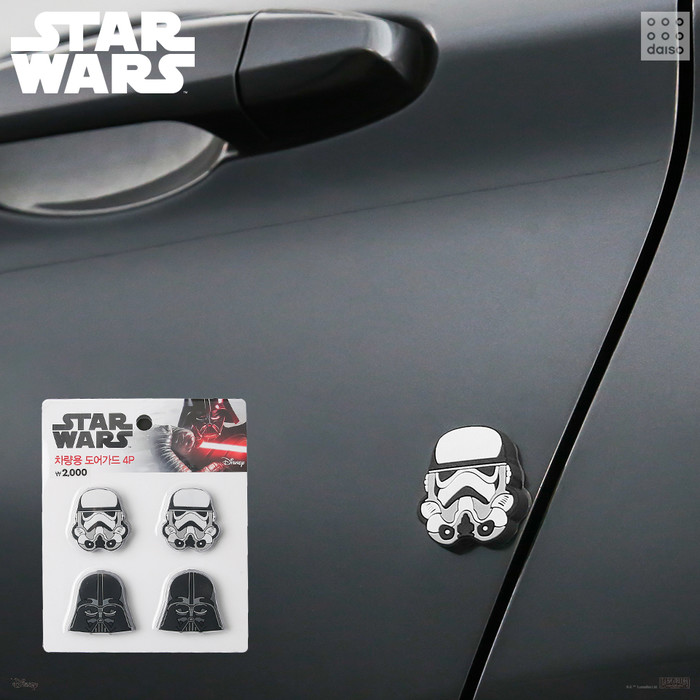 스타워즈 디자인의 자동차 용품을 통해 나만의 개성 있는 자동차를 꾸밀 수 있다. 차량용 주차번호 알림판과 도어가즈로 단조로운 차에 귀여운 포인트를 만들 수 있고, 차량용목쿠션과 차량방향제는 쾌적한 자동차 여행을 돕는다. 또한 여행 필수용품으로 네임택과 여권케이스를 구성했다.