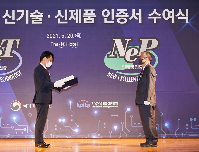 신기술인증은 산업통상자원부가 국내에서 처음 개발된 기술 또는 기존 기술을 혁신적으로 개선·개량한 우수한 기술에 부여하는 인증제도로, 인증을 받은 제품은 자금대출, 세제혜택, 판로 확도 등 다양한 혜택이 주어진다.