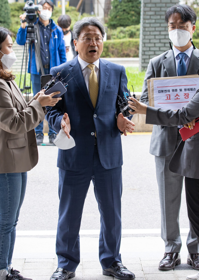 강기정 전 청와대 정무수석이 12일 오전 라임자산운용 사태의 주범으로 꼽히는 김봉현 전 스타모빌리티 회장을 위증과 명예훼손으로 고소하기 위해 양천구 서울남부지검에 도착, 취재진 질문에 답하고 있다.