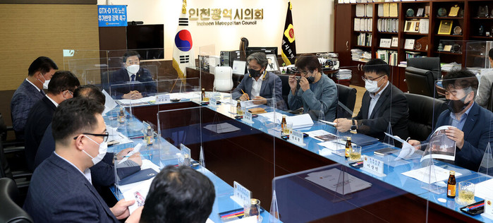 인천시의회가 최근 의장 접견실에서 한국GM·인천시·인천시교육청·시민네트워크(인천사랑운동시민협의회)·인천상공회의소 등 6개 기관 관계자들이 참석한 가운데 ‘한국GM과 지역사회 상생협력을 위한 민·관협의체’ 출범식을 열었다. 사진은 한국GM 경영진과 다양한 의견을 나누고 있는 참석자들의 모습. (사진제공=인천시의회)