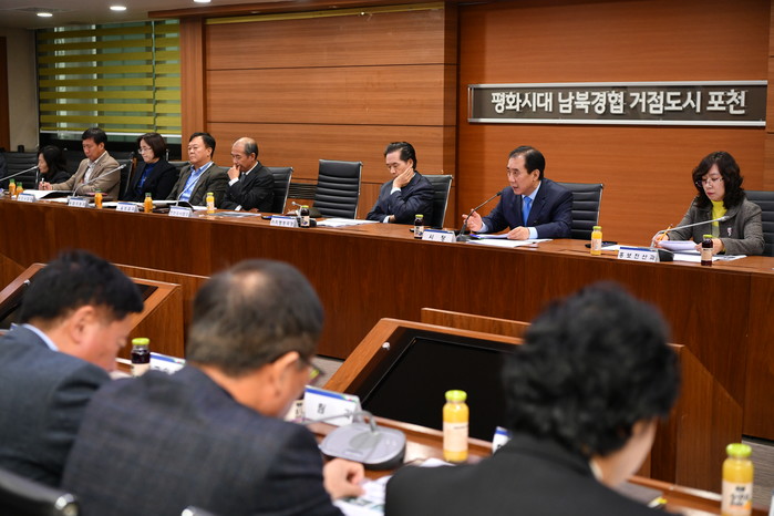 경기 포천시는 11일 시청 회의실에서 박윤국 시장 및 자치행정국장 등 40여명이 참석한 가운데 ‘빅데이터 분석 및 활용기반 구축사업’ 착수보고회를 개최했다. 사진은 박 시장(오른쪽 두 번째)이 관계자들과 의견을 나누고 있는 모습. (사진제공=포천시청)