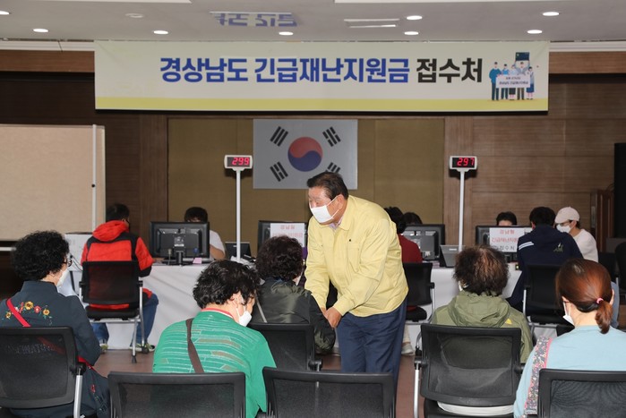 지난 4월 23일부터 함안군 전 읍·면에서 경상남도 긴급재난지원금 신청 접수를 받고 있는 가운데 조근제 함안군수를 비롯한 관계공무원들이 접수상황 및 민원불편사항 등 확인을 위한 현장방문을 실시했다.