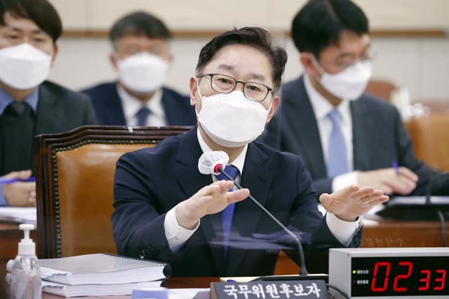 박범계 법무부 장관 후보자는 25일 “조국 전 장관과 추미애 장관이 이어온 형사·공판부 검사 우대라는 대원칙을 존중하고 가다듬겠다”며 검찰 인사 기조를 밝혔다. 박 후보자는 이날 국회에서 열린 인사청문회에서 검찰 인사에 대한 철학을 묻는 위원 질의에 “장관이 되면 조만간 인사해야 할지도 모르겠다”며 이같이 답했다. 박 후보자는 “형사·공판부 우대는 검찰이 수사권 조정을 통해서 다뤄야 할 주 포인트”라며 “인권, 적법절차, 사법적 통제라는 3가지 관점에서 매우 중요한 업무”라고 강조했다.