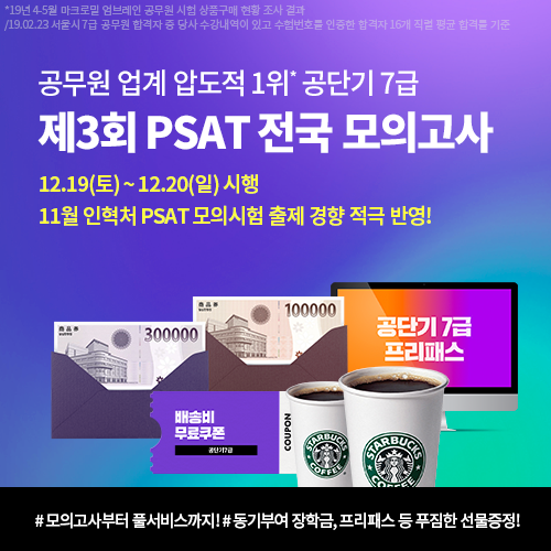 공무원 수험 업계 1위 공단기는 단기합격자들의 학습 습관 및 고득점자의 빅데이터를 분석한 단기 고득점 방법론 등 혁신적 노하우를 기반으로 7급 수험생들을 위한 PSAT 전국 모의고사를 기획했다.