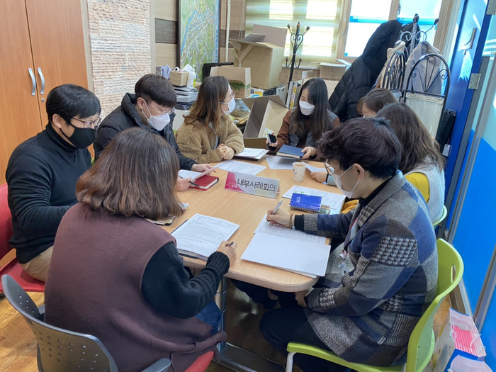 경기 동두천시 무한돌봄센터가 15일 복지상담실에서 2020년 제50회 내부사례회의를 열고, 최근 발굴환 위기가구 중 6가구를 고난도 사례관리 가구로 선정함과 동시에 사례관리를 진행 중인 3가구의 어려움 해소 방안에 대해 논의했다. 사진은 회의 진행 모습. (사진제공=동두천시청)