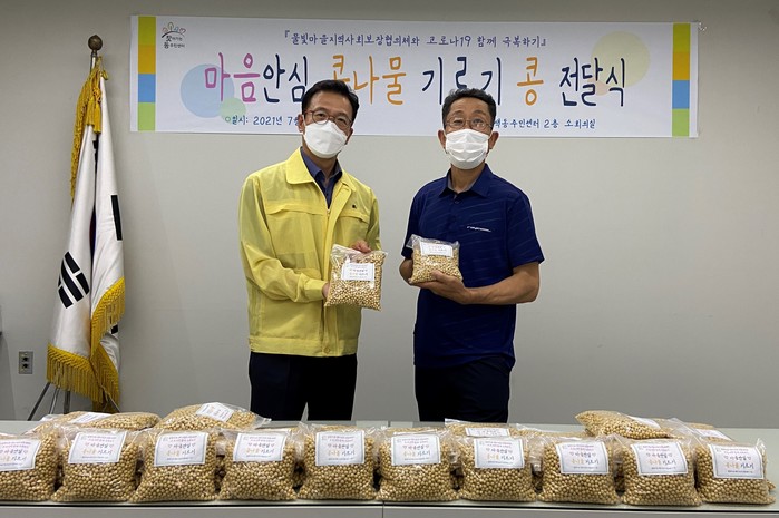 올해도 코로나19가 지속됨에 따라 해당 어르신들이 우울증 예방 및 건강한 식단을 유지할 수 있도록 도움을 드렸다. 이날 전달된 콩나물 콩 60kg은 물빛마을지역사회보장협의체(김동연 위원 증정)에서 기부해 더욱 뜻깊었다.