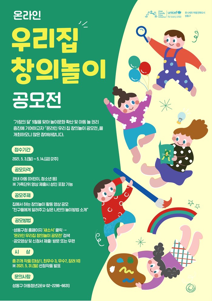| ▲ 온라인 우리집 창의 놀이 공모전 홍보물. (사진제공=성동구청) |