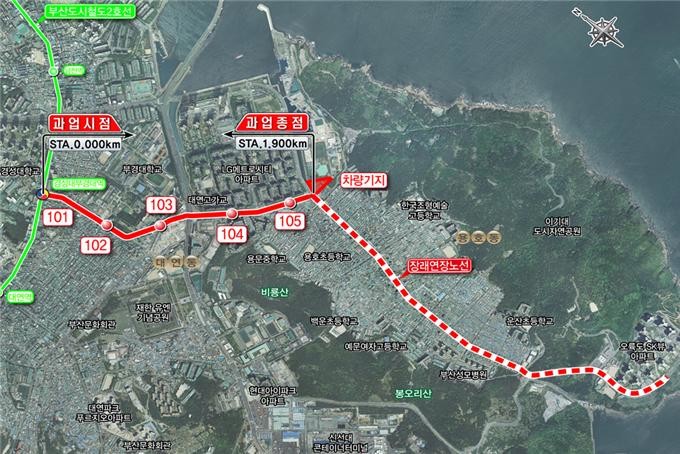 | ▲ 오륙도 실증노선 및 연장구간 노선도 |