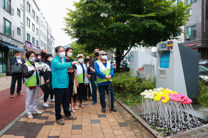 조광한 경기 남양주시장은 지난 24일 별내동 생활 쓰레기 자동 수거 처리 시스템인 자동클린넷 운영 현장을 방문해 운영 상황을 확인하고, 관리가 미흡한 일부 상업 및 단독주택 지역의 클린넷 관리 방안 등을 공유했다. 사진은 조 시장(가운데)이 관계자들과 자동클리넷을 둘러보고 있는 모습. (사진제공=남양주시청)