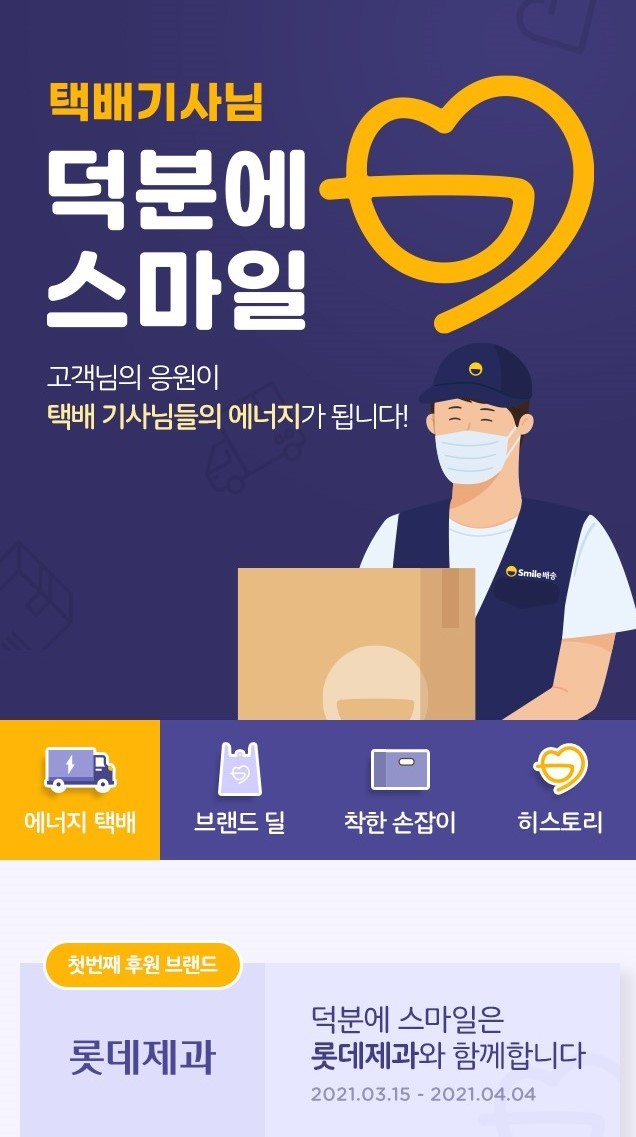 롯데제가 참여한 이번 ‘덕분에 스마일’ 캠페인은 언택트 트랜드로 업무가 갑자기 늘어난 택배기사에게 응원의 마음을 전달하는 것이다.