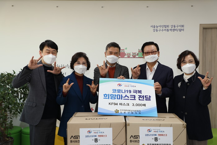 민주평통 강동구협의회는 코로나19로 구민 모두가 어려운 상황에 자문위원들의 따뜻한 정성을 모아, 우리 주변의 힘든 이웃들에게 나눠주고자 KF94 마스크 3000매를 준비했다.