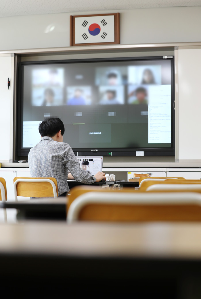 정부가 전국 유치원과 초·중·고교 개학을 예정대로 오는 4월6일 할지를 조만간 결정해 발표할 것으로 알려진 30일 오후 세종시의 한 초등학교에서 교사와 학생들이 온라인 영상 원격수업 테스트를 하고 있다.