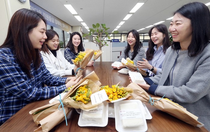 이번 캠페인은 힘든 여건 속에서도 묵묵히 고객중심의 현장을 지키고 있는 직원들은 물론 영업점에서 함께 근무하며 방역에 힘쓰고 있는 청경반장과 미화원을 대상으로 감사의 마음과 응원을 담아 꽃과 떡을 전달하는 방법으로 진행된다.