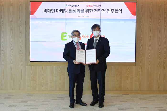 [시민일보 = 여영준 기자] BNK부산은행이 2일 본점에서 국내 제2호 디지털손해보험사인 하나손해보험과 ‘비대면 제휴마케팅 활성화를 위한 전략적 업무협약’을 실시했다고 밝혔다.