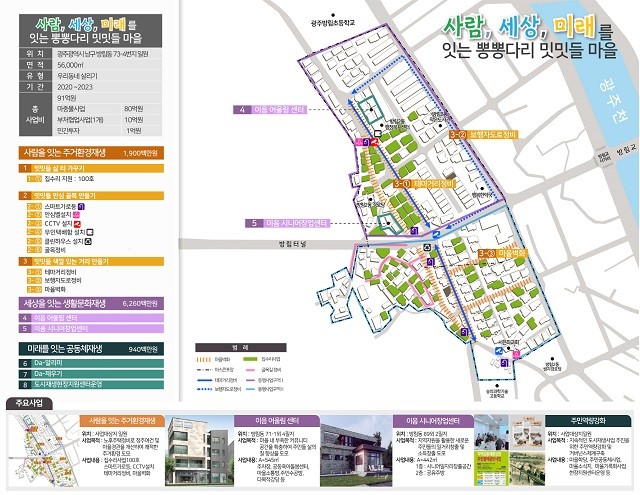이번 사업은 방림2동 행정복지센터 일원 5만6000㎡을 대상으로, 2021년부터 3년간 총사업비 91억 원을 투입해 소규모 주택 정비, 안심골목 만들기, 이음어울림센터 등 주민생활 밀착형 공공시설을 공급하고 자발적 주거환경 개선을 유도하게 된다.