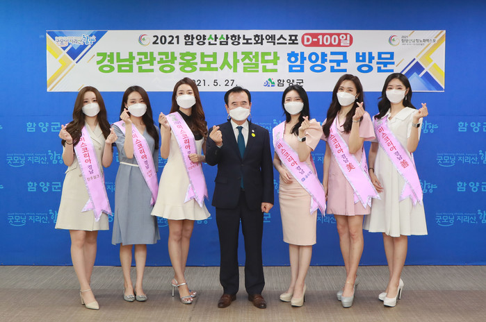함양군은 2021 미스코리아 경남선발대회에서 경남의 대표 미녀로 선발된 미스경남 경남관광홍보사절단이 27일 함양군을 방문해 2021산삼함양항노화엑스포의 성공적인 개최를 위한 적극적인 홍보를 약속했다고 밝혔다.