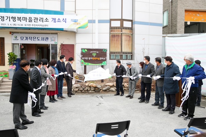 경기 이천시는 최근 모가면에 ‘경기행복마을관리소’를 조성하고 개소식을 열었다. 행복마을관리소에서는 약자보호와 생활환경 개선, 안전순찰 등의 생활밀착형 공공서비스를 제공한다. 사진은 이날 개소식에서 참석한 엄태준 시장과 관계자들이 제막식을 진행하고 있는 모습. (사진제공=이천시청)