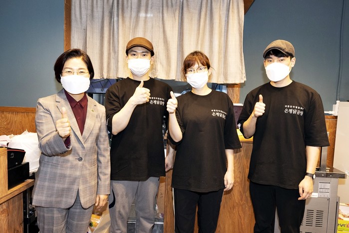 | ▲ 지난 15일 (왼쪽)김미경 은평구청장 외 청년창업점포 관계자들 (사진제공=은평구청) |