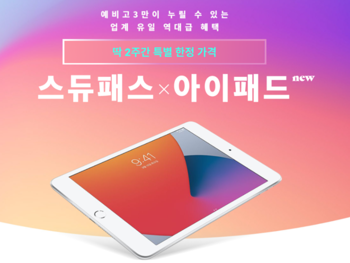 올 하반기에는 회원 대상 심층조사를 통해 인강 학습 시 필요로 하는 제품 중 가장 높은 선호도를 보인 아이패드를 결합 상품으로 선정해 지난달 말 스듀패스 X 아이패드 1차 판매로 큰 호응을 일으켰다는 게 회사측의 설명이다. 이번에는 아이패드 8세대와 함께 에어팟 프로를 추가해 또 한번의 역대급 결합 상품으로 2차 판매를 진행한다.