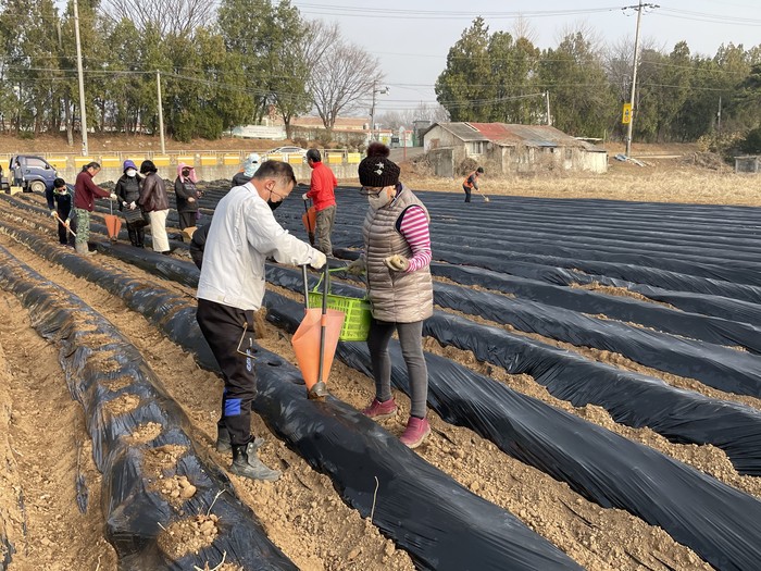 인천 강화군 선원면주민자치위원회는 23일 불우이웃 돕기를 위한 '사랑의 감자' 심기 행사를 열고 지역내 선원초등학교 옆 유휴농지에서 씨감자 160kg을 파종했다. 사진은 이날 참여한 위원들이 감자를 심고 있는 모습. (사진제공=강화군청)