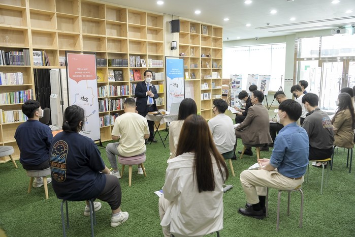 허석 전남 순천시장은 7일 청년 30여명과 시대의 고민을 함께하는 정겨운 담소의 시간을 보냈다. 이날 담소는 여러 분야의 청년들이 모여 청년들에게 필요한 지원정책 등이 무엇인지 소통하기 위해 마련됐다. 사진은 허 시장이 청년들과 대화를 하는 모습. (사진제공=순천시청)