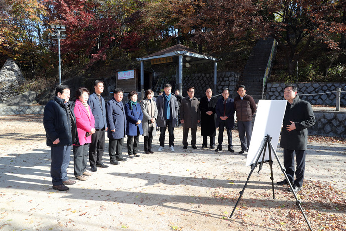| ▲ 숭인근린공원을 방문한 종로구의원들이 관계자의 설명을 듣고 있다. (사진제공=종로구의회) |