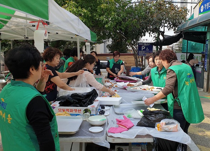 인천 서구 가정3동 새마을부녀회는 22일 가정3동 행정복지센터 주차장에서 이웃사랑 실천을 위한 먹거리 바자회를 개최했다. 이날 바자회 수익금은 겨울철 김장봉사 등 이웃을 돕는 데 쓰일 예정이다. 사진은 음식을 준비하는 모습. (사진제공=서구청)