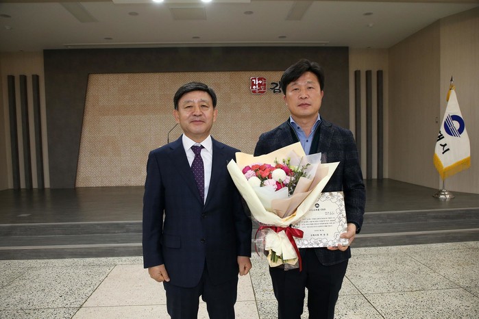 김해시는 2월 정례조회에서 ㈜동아에이차아이 정인수 대표에게 ‘자랑스러운