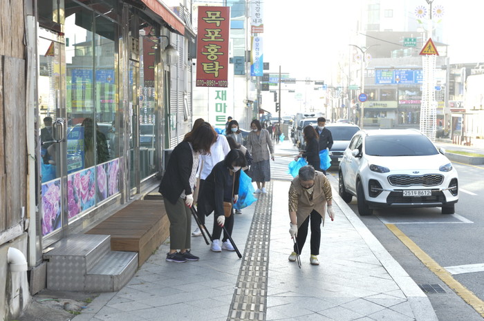 경기 포천시가 다가오는 추석을 맞이해 지난 22일 지역내 주요 도로변, 이면도로 등을 중심으로 국토대청소를 했다. 이번 정화활동은 시 전역에서 대대적으로 진행했다. 사진은 이날 참여자들이 지역내 시가지에서 쓰레기를 줍고 있는 모습. (사진제공=포천시청)