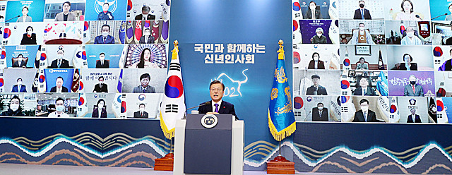 문재인 대통령은 7일 청와대에서 화상으로 주재한 2021년 신년 인사회에서 “새해는 통합의 해”라고 말했다. 특히 정치권에서 이명박 박근혜 전 대통령에 대한 사면론이 한창인 가운데 문 대통령이 신년 인사말에서 ‘통합’을 키워드로 꺼내 들었다는 점에서 그 배경에 관심이 쏠린다. 다만 문 대통령의 이날 언급은 사면을 비롯해 정치권의 통합을 구체적으로 지칭한 것이 아닌, 전반적인 국정운영 방향에 있어 통합의 중요성을 강조한 것이라는 해석도 나온다.
