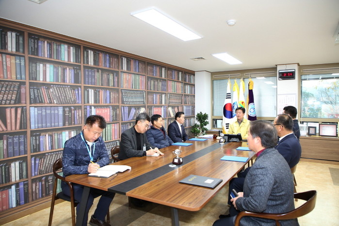 경기 연천군은 최근 체계적·효율적으로 민간체육회장 선출을 하기 위해 체육회 선거관리위원 7명에게 위촉장을 수여하고, 민간체육회장 선거와 관련해 만전의 준비를 할 것을 당부했다. 사진은 김광철 군수가 위원들과 대화를 나누는 모습. (사진제공=연천군청)