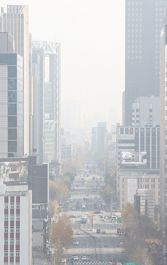 서울 등 수도권 초미세먼지 농도가 ‘나쁨’ 수준을 보인 16일 오전 서울 종로 일대가 뿌옇다.