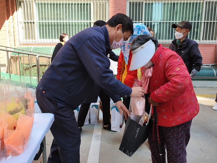 인천 남동구 만월종합사회복지관이 9일 코로나19로 심리적 어려움을 겪고 있는 무료급식소 이용자, 노인도시락 대상자, 사례관리대상자 등에게 남동소상공인연합회로부터 후원받은 반려식물을 나눠주는 캠페인을 전개했다. 사진은 반려식물을 배부하는 모습. (사진제공=남동구청)