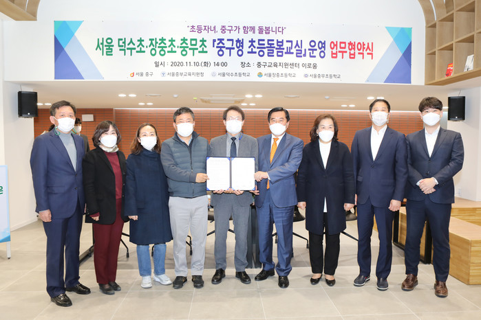 [시민일보 = 여영준 기자] 서울 중구의회(의장 조영훈) 의원들이 최근 중구교육지원센터 이로움 지하 1층에서 열린 ‘중구형(덕수·장충·충무초) 초등돌봄교실 업무협약식’에 참석했다.
