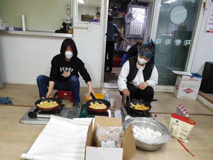 경기 수원시 팔달구 지동 지역사회보장협의체는 20일 지역내 홀몸노인, 저소득층 30가구를 대상으로 ‘사랑의 반찬 나눔’을 실시했다. 사진은 참여자들이 반찬을 만들고 있는 모습. (사진제공=팔달구청)