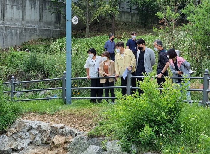경기 수원시 영통구는 여름철 풍수해에 대비해 오는 7월2일까지 2주간 취약지역 안전사고 예방을 위한 현장점검을 실시한다. 사진은 김용덕 구청장(왼쪽 세 번째)이 24일 관계자들과 현장을 살펴보고 있는 모습. (사진제공=영통구청)
