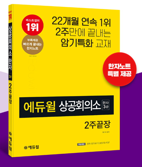 [시민일보 = 여영준 기자] 종합교육기업 에듀윌(대표 박명규)이 발간한 ‘에듀윌 상공회의소 한자 3급 2주끝장’ 수험서가 온라인서점 예스24의 상공회의소 한자 부문 7월 4주차 베스트셀러 1위를 차지했다.