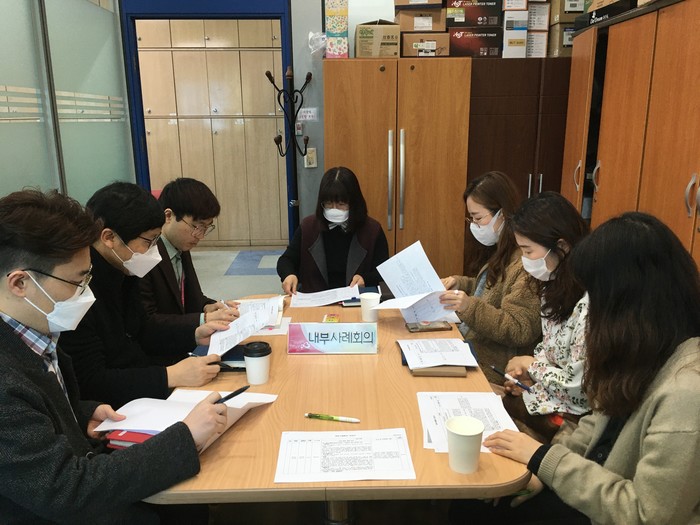 경기 동두천시 무한돌봄센터는 3일 복지정책과 상담실에서 동절기 복지사각지대로 발굴된 위기가구의 지원방안을 논의했다. 사진은 회의에 참석한 센터 관계자들이 의견을 나누고 있는 모습. (사진제공=동두천시청)
