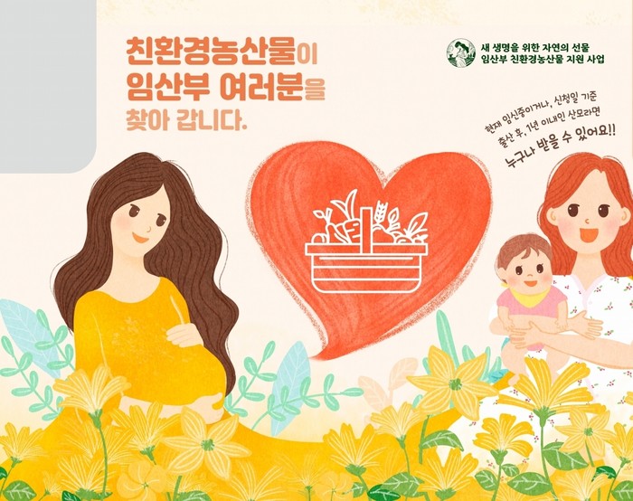 희망자는 오는 18일부터 ‘임산부친환경농산물쇼핑몰에서 온라인 신청이 가능하며, 부득이한 경우 신청서와 주민등록등본, 임신·출산을 확인할 수 있는 서류(임신 확인서, 출생증명서, 산모 수첩 등)를 지참해 농업기술센터 친환경 농업담당으로 방문.신청하면 된다.