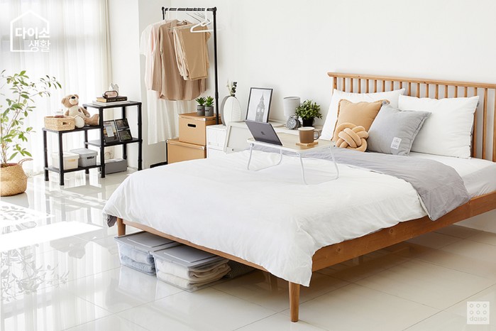 이동식 행거에는 산뜻한 봄옷을 정리하고, 겨울옷은 ‘종이박스 정리함’으로 깔끔하게 정리할 수 있다. ‘종이박스 정리함’은 두 가지로 사이즈로 옷의 크기에 따라 선택하면 되고, 깔끔한 디자인으로 ‘이동식 행거’ 주변에 적재해 정리하기 좋다. 두꺼운 이불을 효율적으로 정리하는데 도움을 주는 압축팩은 ‘이불용 밸브압축팩’을 판매하고 있어 사이즈에 맞게 구매해, 정리하면 부피도 줄어들고 보관하기 간편해 계절이 바뀌는 시기에 많이 찾는 아이템이다.