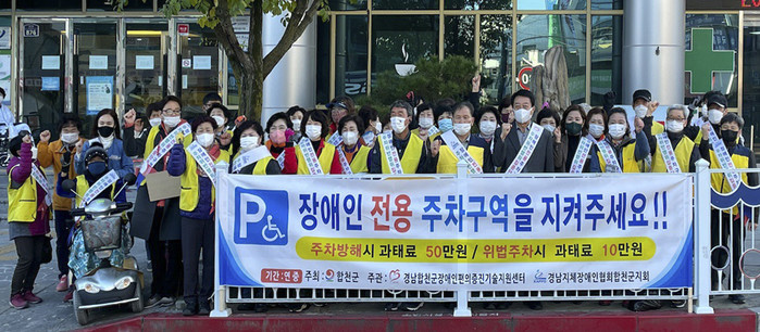 합천군 장애인편의증진기술지원센터(센터장 김홍기)는 10월 29일, 군청사거리 일대에서 장애인이동권보장과 바람직한 주차 문화를 확립하기 위한 장애인 전용주차구역 인식개선 캠페인을 실시했다.