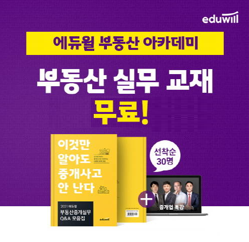[시민일보 = 여영준 기자] 에듀윌은 중개사 자격 취득 이후 실무능력 향상을 돕는 부동산 아카데미의 중개 실무 Q&A모음집 및 특강을 무료 제공한다고 밝혔다.