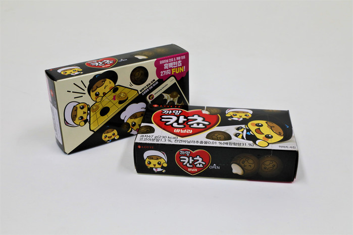 칸쵸 특유의 동그란 모양이 바둑알을 연상시킨다는 점에 착안, 바둑알처럼 흰색과 검은색 2가지가 있으면 재미있겠다는 내부 의견이 반영돼 제품화됐다는 게 회사측의 설명이다.